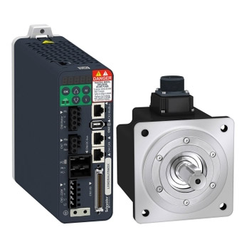 Комплект сервопривода Lexium 28 включает в себя сервопреобразователь, работающий в паре с синхронным серводвигателем переменного тока BCH2. Для удобства выбора они были заранее скомпонованы в комплекты с приведенными электромеханическими характеристиками на выходе системы. Комплект сервопривода Lexium 28 предлагает уже согласованные комплекты серводвигателей и сервопреобразователей для наибольшего соответствия Вашим нуждам, а также оптимизации производительности установки в целом, освобождая Вас от сложной процедуры подбора серводвигателей относительно сервопреобразователей с необходимостью ручного расчета выходных электромеханических характеристик выбранной Вами системы.